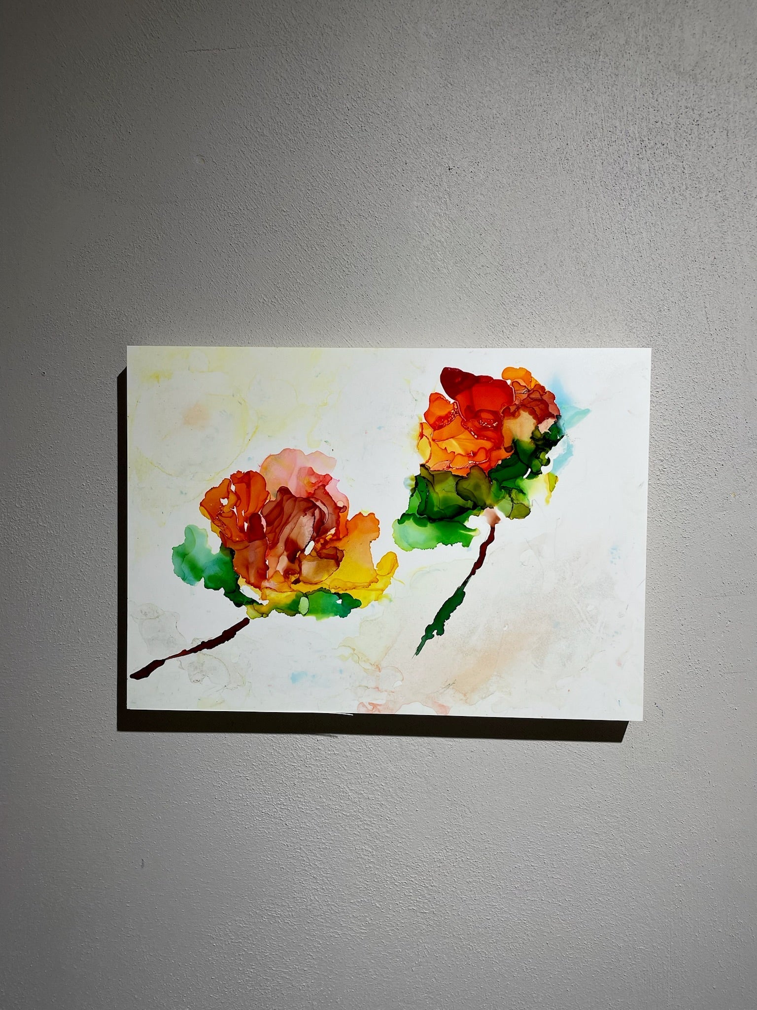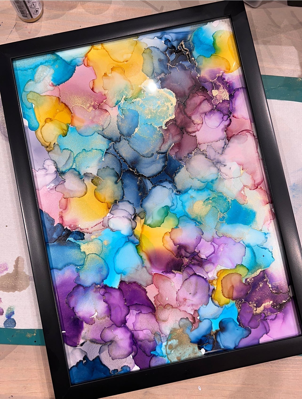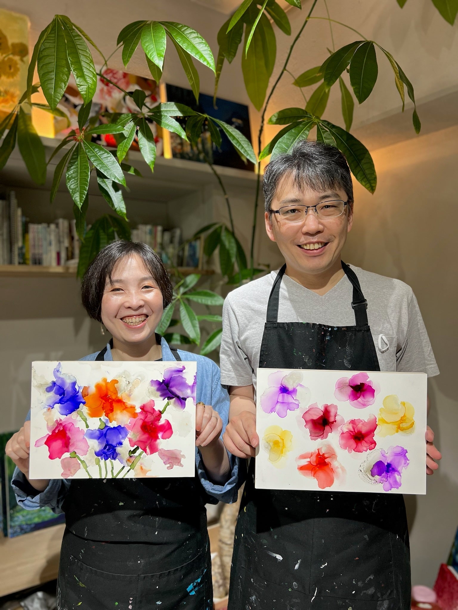 アルコールインクを垂らし、インクの広がりやにじみ、色の混ざり合いから偶然できる模様を楽しむアートです。