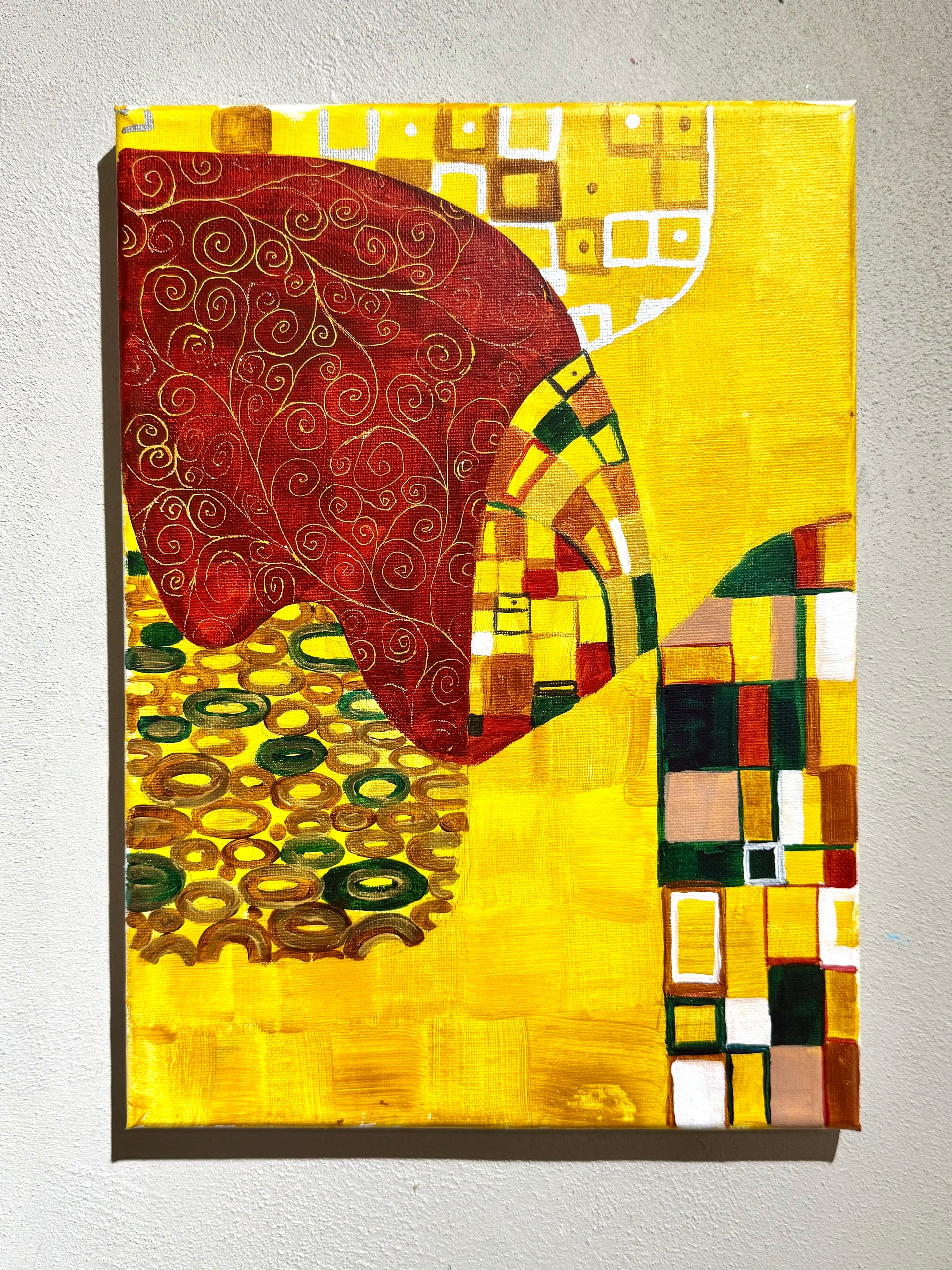 グスタフ・クリムトの描き方に習った技法で一緒に描きます。