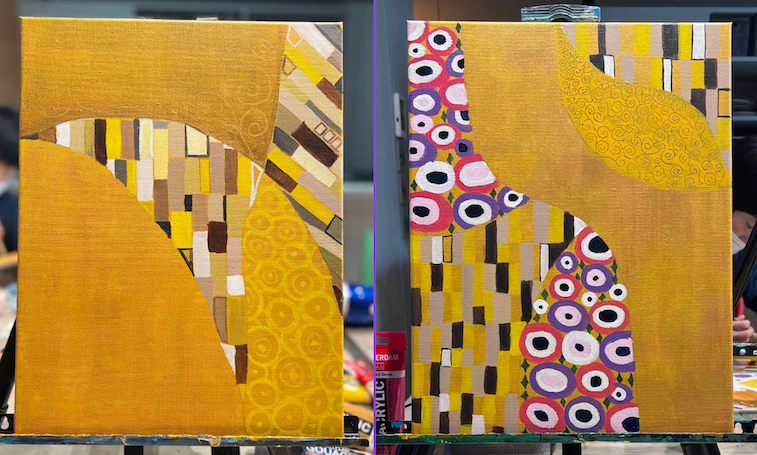 グスタフ・クリムトの描き方に習った技法で一緒に描きます。