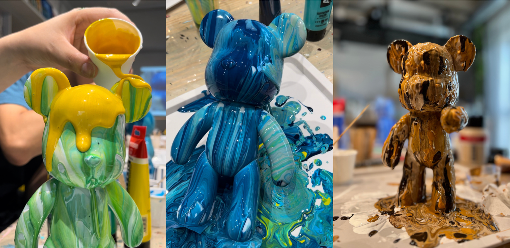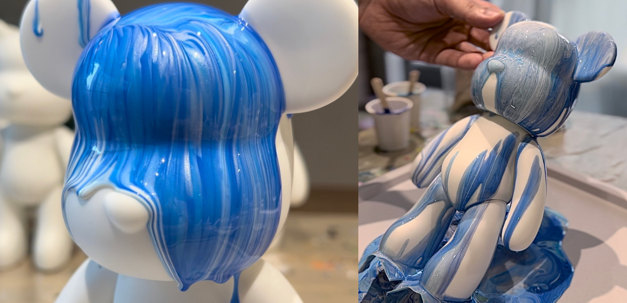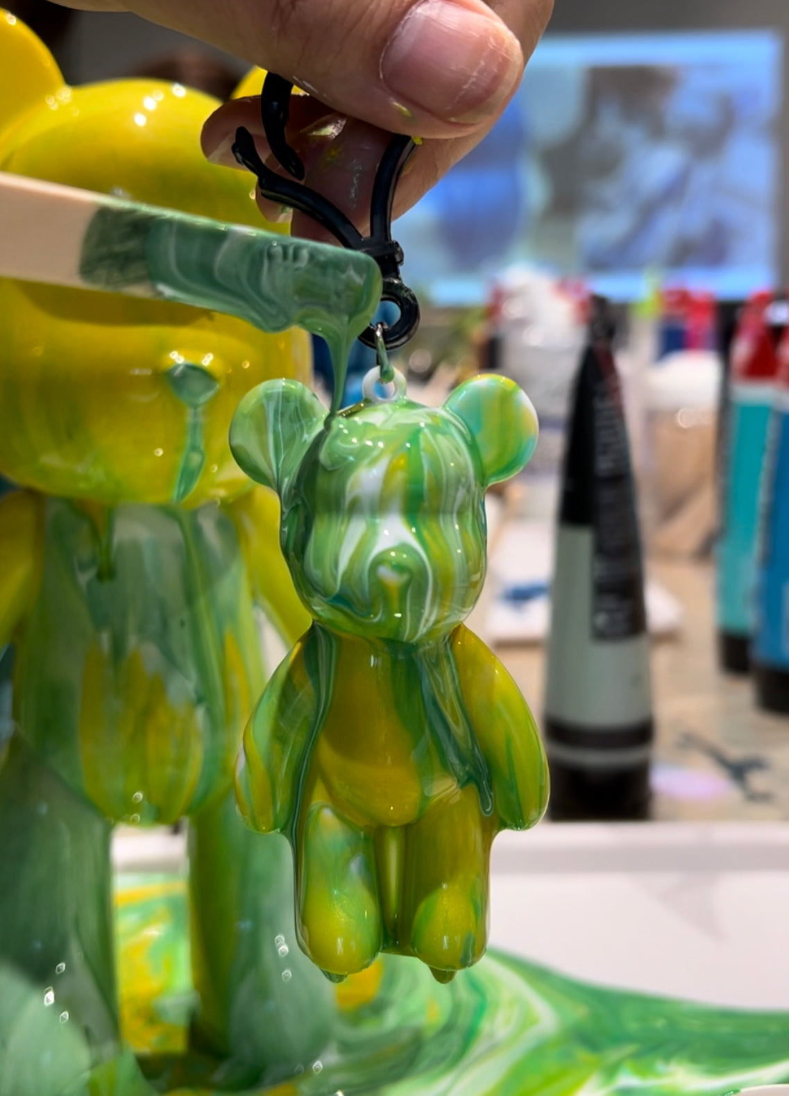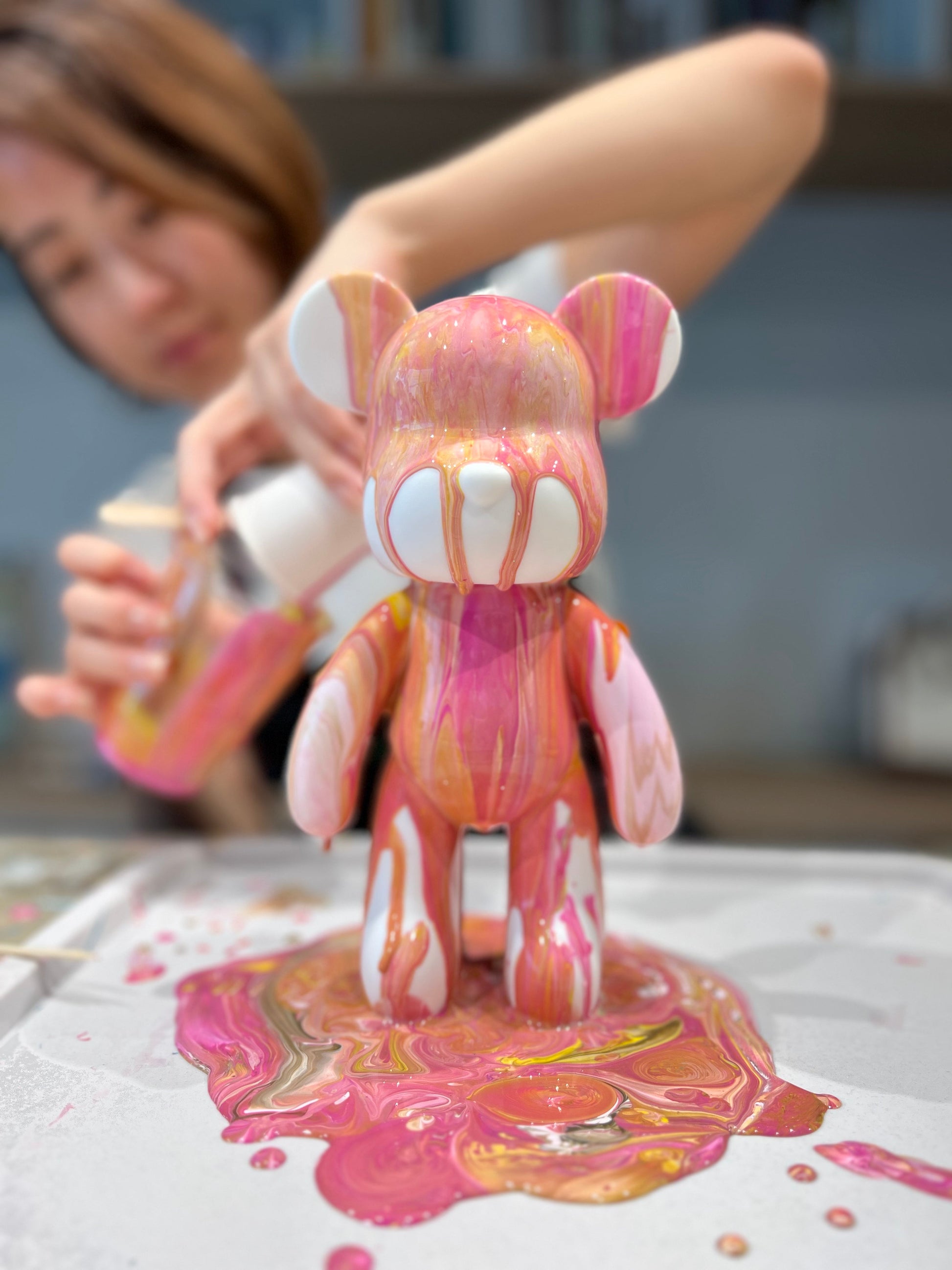 ③絵の具をたらし込んでベアフィギュアをペイントする