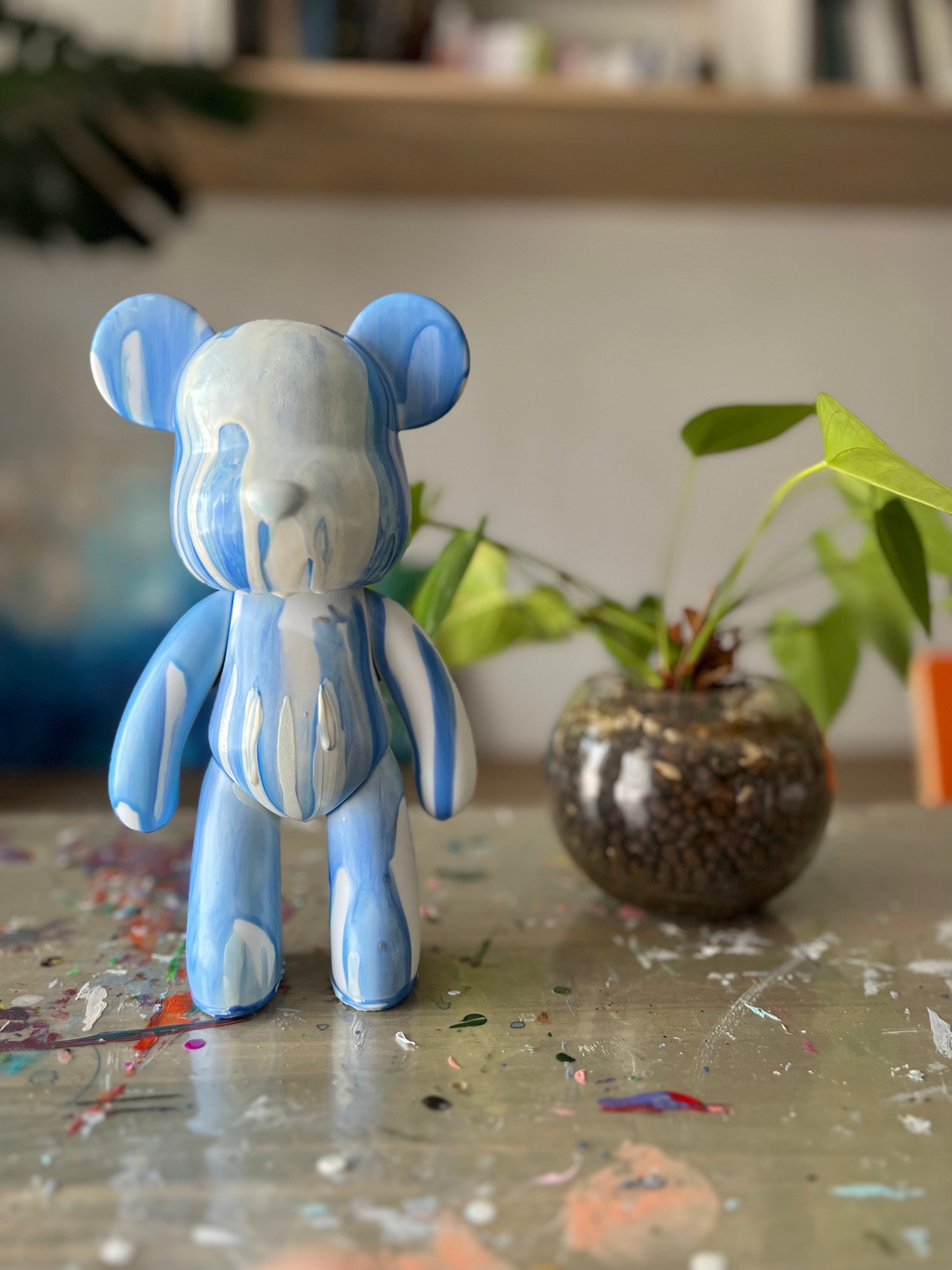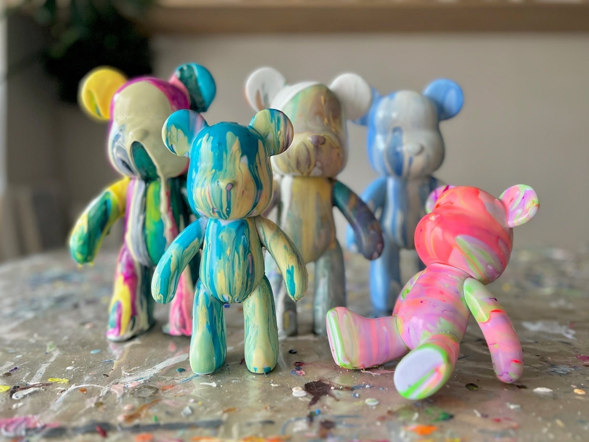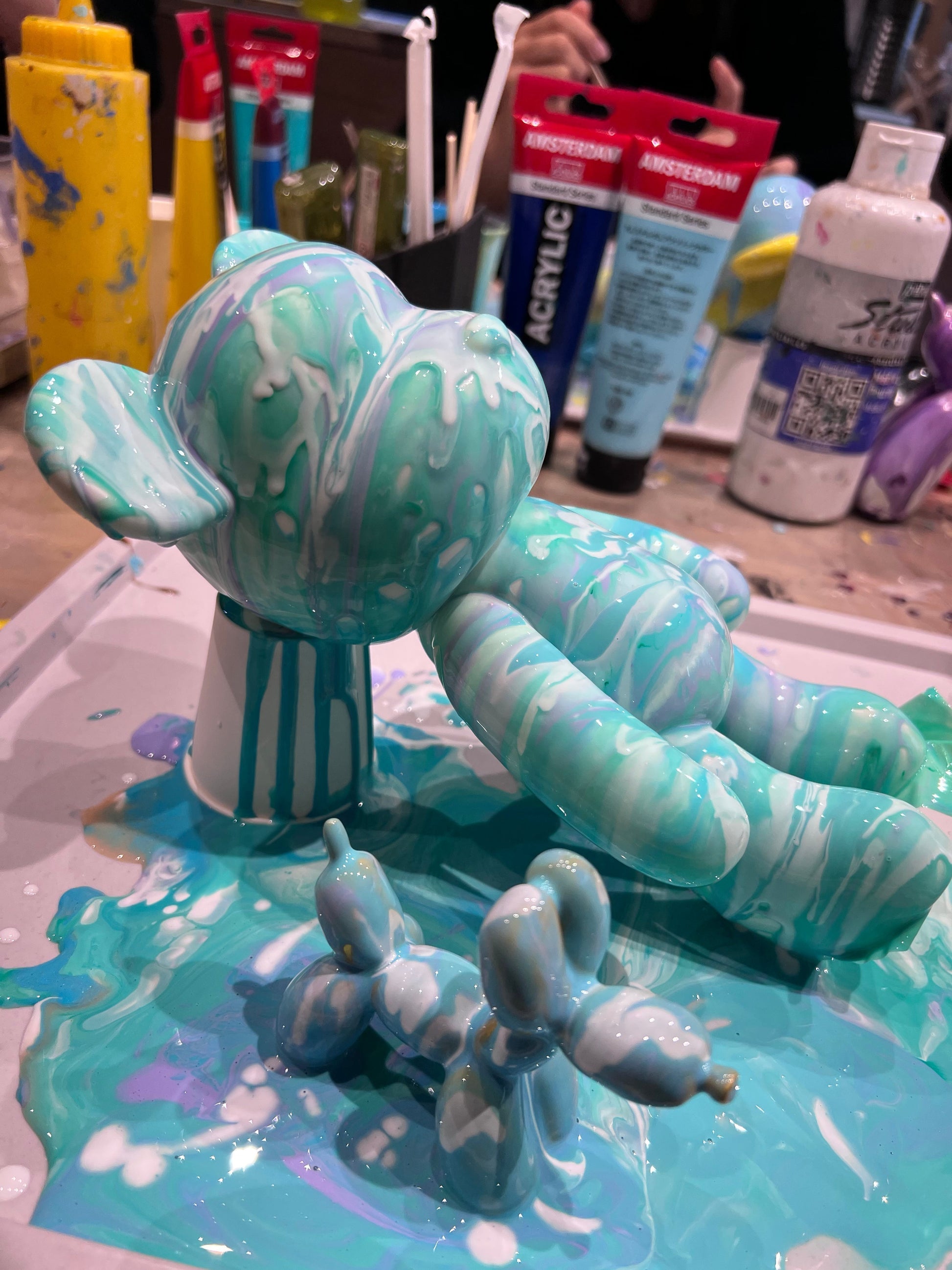 ③絵の具をたらし込んでベアフィギュアをペイントする
