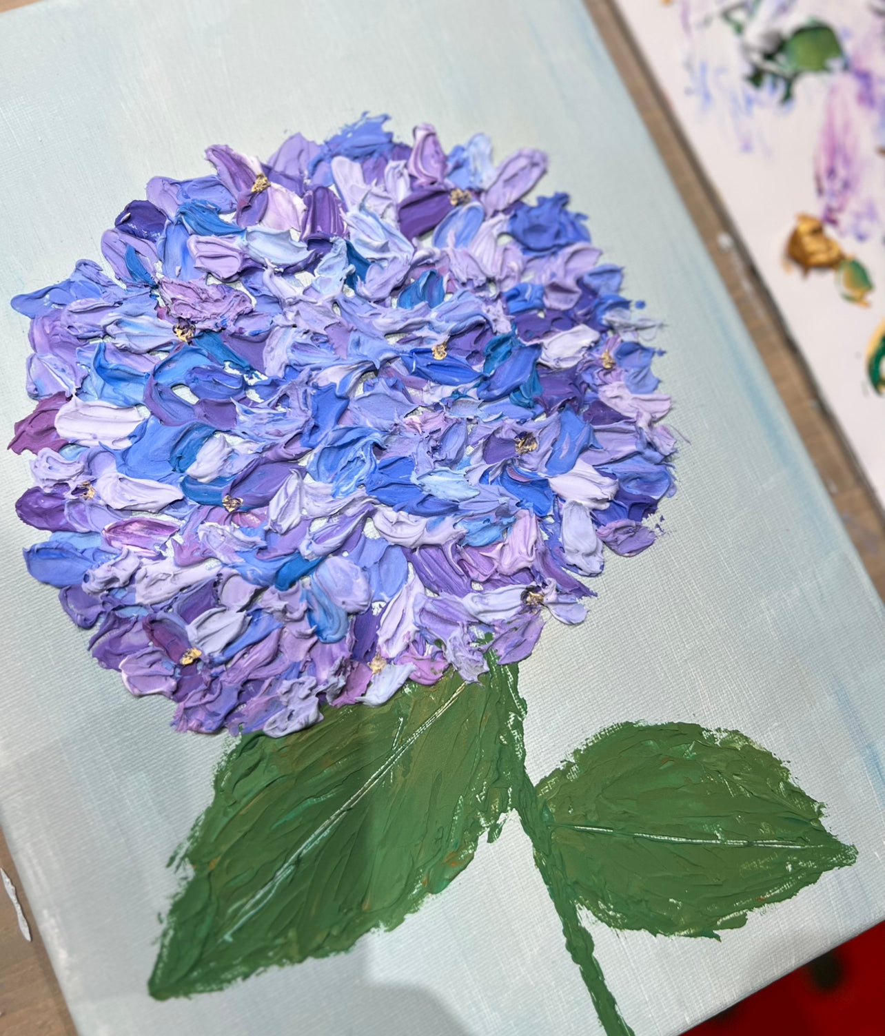 ③キャンバスに花を描く